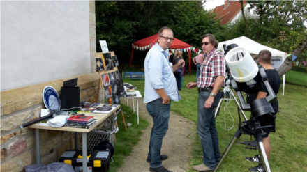 Neuer TextBereits auf dem Einladungsflyer gab es den Hinweis zum Sonne-, Mond- und Sternegucken und das Programm sah dann ab 15:30 Uhr und 21:30 Uhr jeweils Sonnen- bzw. Sternbeobachtungen vor.