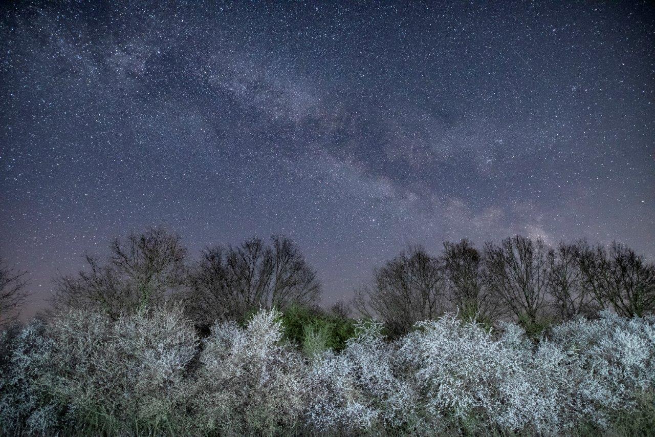 Liebe Sternenfreundinnen, liebe Sternenfreunde, die Zeit um den 20. April wird für die Beobachtung des Lyriden-Meteorschauers empfohlen. Auf dem Foto 4352 ist das Sternbild Leier beschriftet. Aus dem Gebiet dieses Sternbildes können mit viel Glück 18 Sternschnuppen pro Stunde fallen. Während meiner Beobachtungszeit sind über 80 Fotos entstanden. Obwohl ich parallel mit zwei Kameras gearbeitet habe, konnte ich hinterher auf keinem Bild eine Sternschnuppe finden. Auf der linken Bildhälfte (Bild 4352) kündigt sich mit seiner blauen Farbe schon der neue Tag an. Dieses Foto ist um 4:25 Uhr entstanden. Foto 8425 ist von 3:32 Uhr. Zu dieser Zeit wurden die Schlehen vom untergehenden Mond angeleuchtet. Das Mondlicht bewirkte auch die blaue Farbe dieses Nachthimmels. Die Sterne Deneb, Wega und Atair bilden das Sommerdreieck, welches uns nun bis Weihnachten 2021 am Nachthimmel begleiten wird. Viel Freude beim Anschauen der Fotos und eine angenehme neue Woche wünscht Euch Helmut