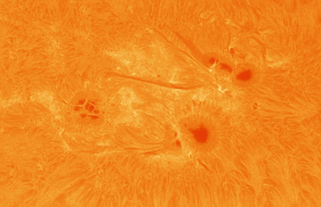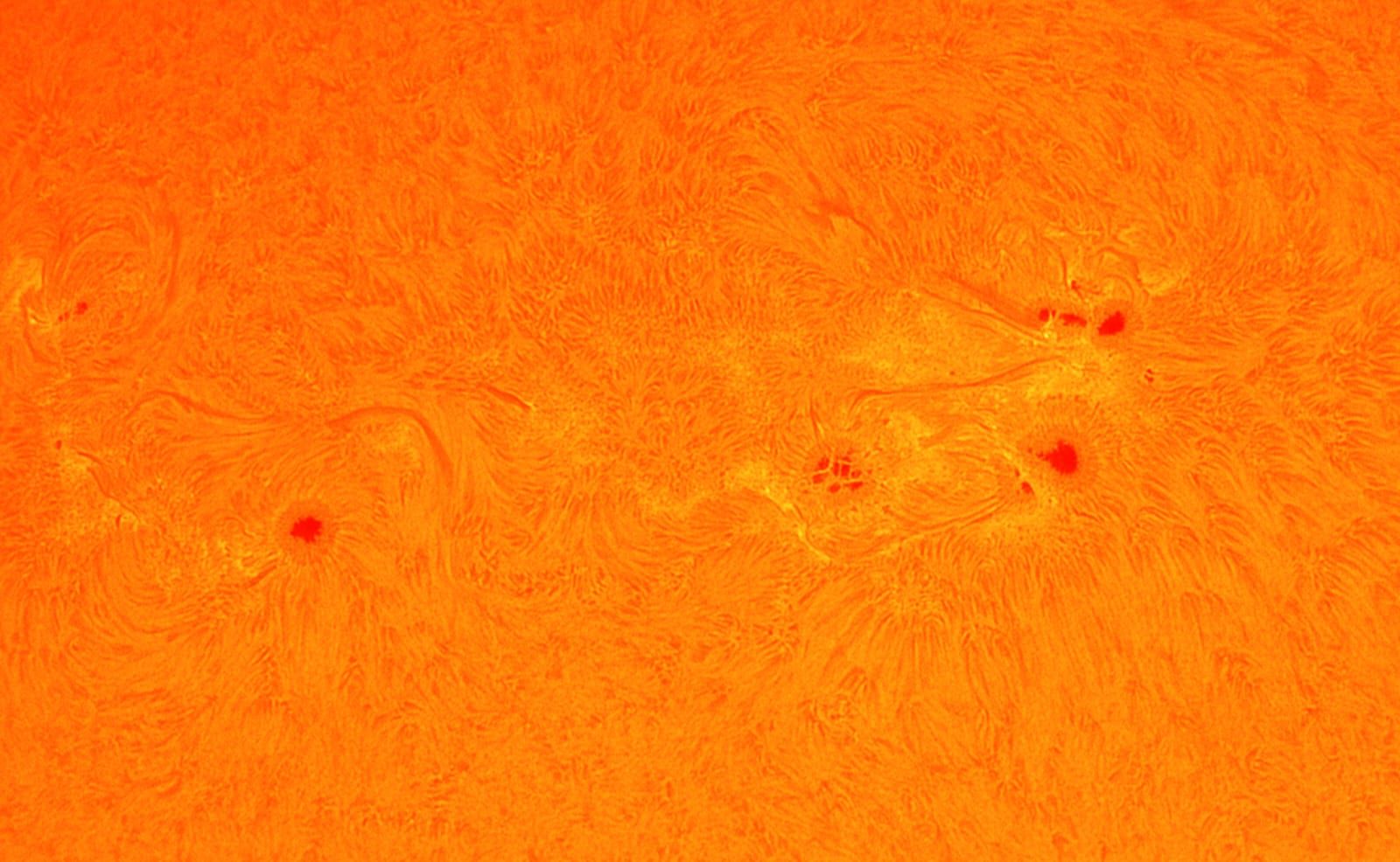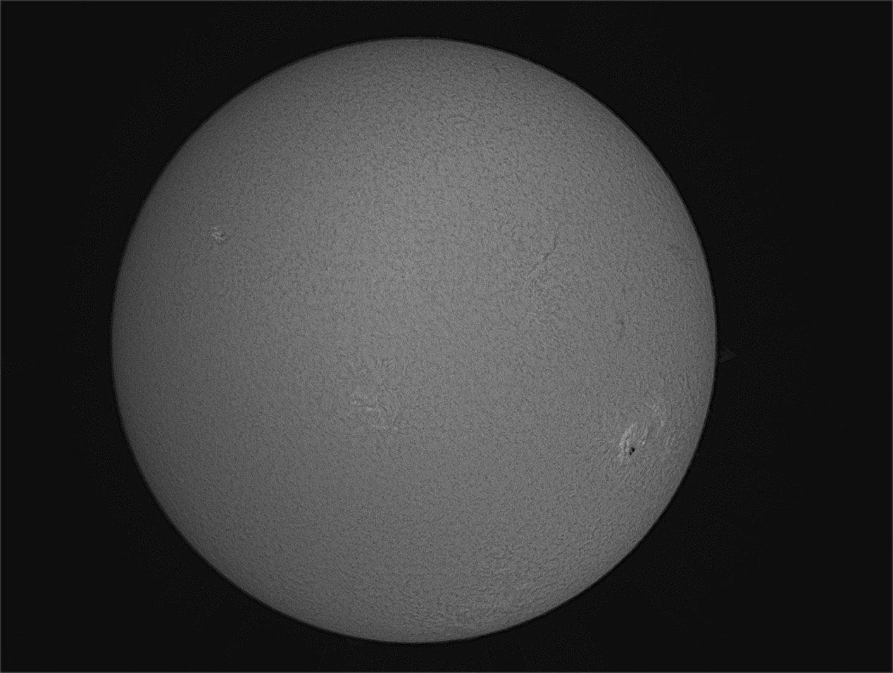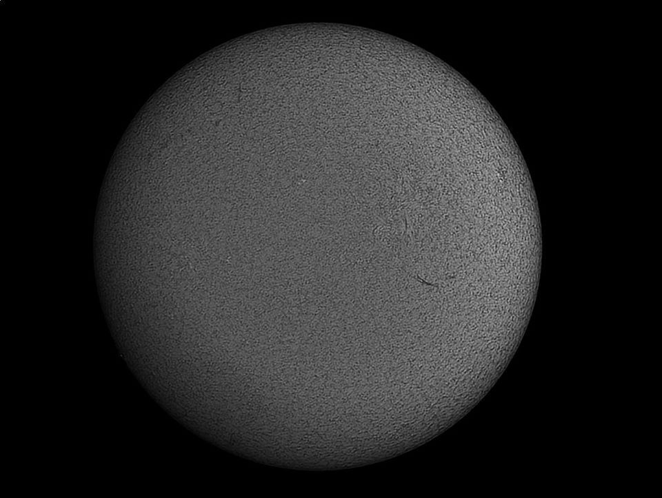 Das Bild wurde mit einer Schwarzweiß-Kamera und einem 50mm Lunt Sonnenteleskop aufgenommen.