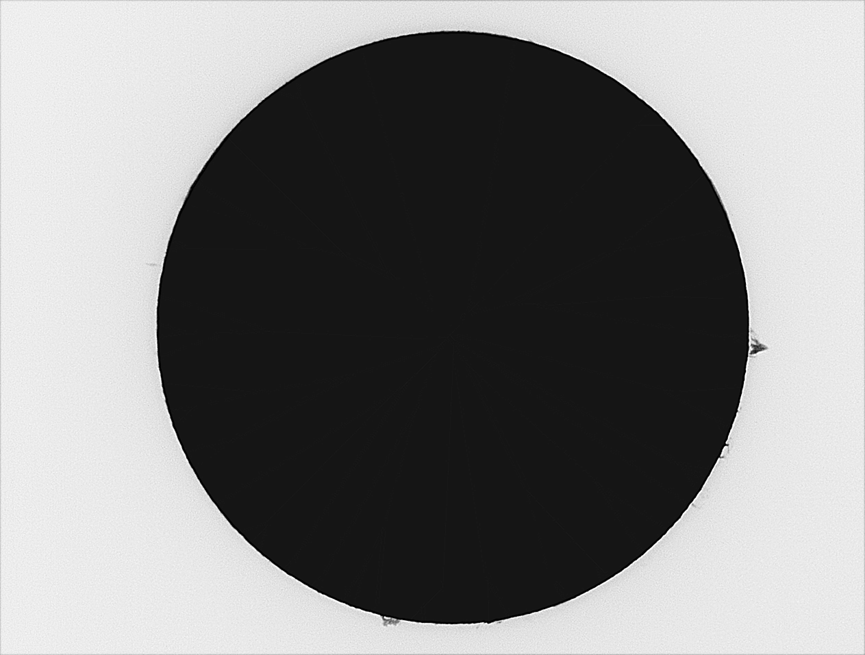 Die Sonnenscheibe ist schwarz, um die Protuberanzen besser darzustellen.