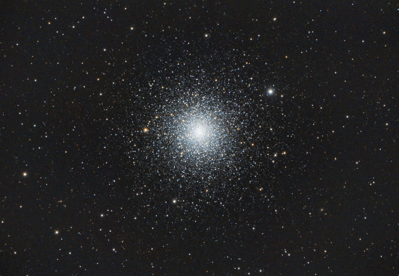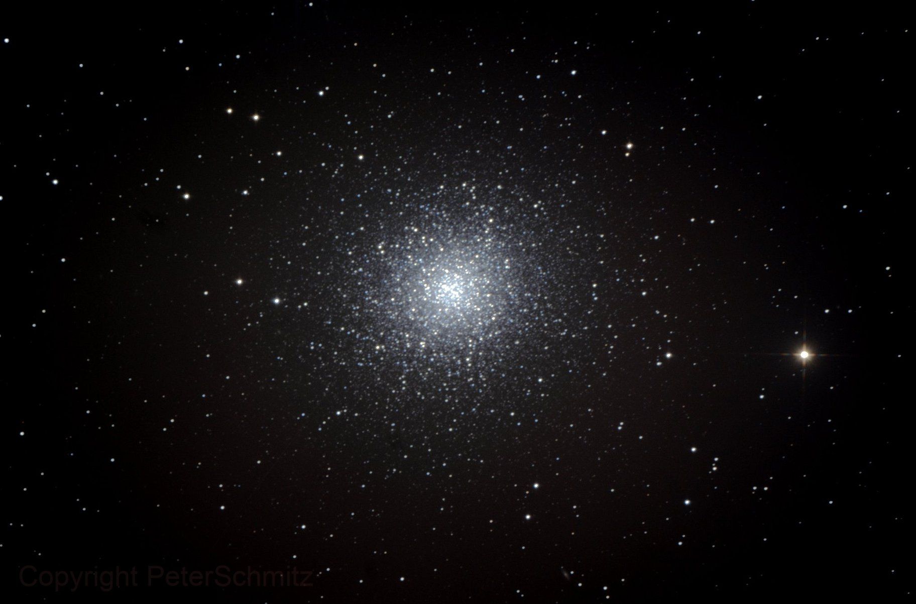 M3 ist ein Kugelsternhaufen im Sternbild Jagdhunde, in einer Entfernung von ca.34.000 Lichtjahren. In dem Sternhaufen befinden sich ungefähr 1 Millionen Sterne, Er hat einen Durchmesser von 125 Lichtjahre.
